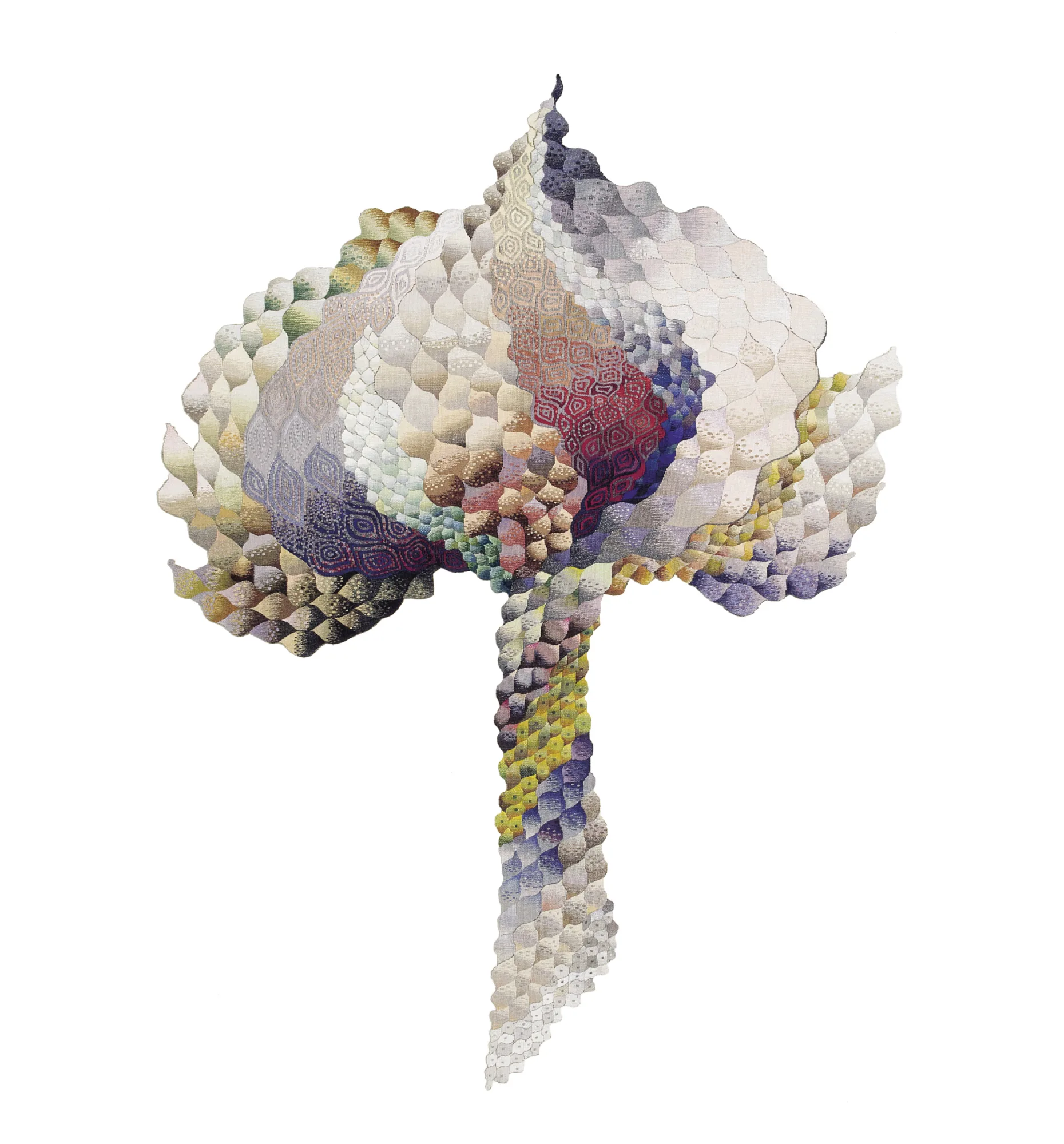 Már a nyolcvanas évek, majd a kilencvenes évek Remsey Flóra-alkotta művein is fel-feltünedezik a falikárpitok meg-megcsillanó, transzcendens sugallatokat hordozó-tolmácsoló építőeleme: a fémszál. A kilencvenes években aztán a fémszálat – a fémes csillogású, ezüstös színezetű vékony, viszonylag könnyen hajlítható drótot – használja, fonja, szövi meg Remsey Flóra, és alkot ezzel az anyaggal olyan aurájú és hatásvilágú kompozíciókat, amely a textilszállal nem valósíthatók meg. A sík fémtextil-felületből az anyagalakítás hallatlan gazdag lehetőség-világát kihasználva, és az ezüstpapír-golyókat és -alakzatokat is kompozíciós alkotórészekké avatva aztán kilép a dombormű-térbe, majd a valóság terekbe is: műveinek a szövedékszerűség mellett egyre lényegibb kifejező elemévé bomlik a plaszticitás. A font, a szövött, eldolgozott szálak és a szabadon hagyott drótvégek lágyság-élesség ellentéte, a sík és a plasztikussá emelt textúra-mezők, a gömbök, a korongok, a gyűrűk, a spirálisok váltakozása, a zárt és a nyitott formarendek közötti átmenetek teremtik meg e művek különös feszültségét, s egyúttal a dekorativitásokban tündöklő szépségét.